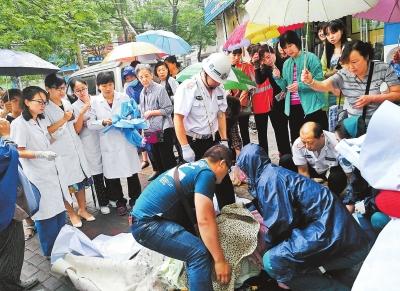 “快!找個衣服給孩子蓋住。”不知誰喊了一聲。由于下雨天冷,光溜溜的小家伙凍得渾身發(fā)紫。話音剛落,沿街門店的商戶楊女士健步如飛,回到店里把自家孩子的毛毯拿過來,熱心市民有的還把衣服脫掉……毛巾、毛毯、衣服從人縫里送進來,一層又一層地裹住嬰兒。當120急救車趕到現(xiàn)場,眾人把產婦抬上了救護車,所有人長長地出了口氣。