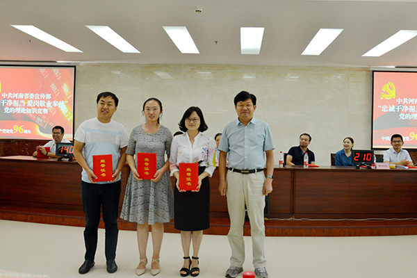 7月7日下午,省委宣傳部舉辦“忠誠干凈擔(dān)當(dāng) 愛崗敬業(yè)奉獻(xiàn)”黨的理論知識競賽,省委網(wǎng)信辦副主任蔡新民同志、省委宣傳部副巡視員趙鋼同志、《黨的生活》雜志社總編趙云龍同志、省委宣傳部副巡視員李文良同志等部領(lǐng)導(dǎo)出席,部機(jī)關(guān)全體黨員參加。